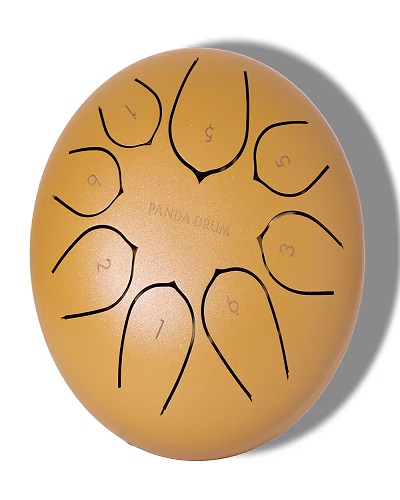 The Panda Drum is a type of steel tongue drum, sometimes called a handpan. It’s made from alloy steel with “tongues” — cut or etched segments on its surface that produce musical notes when struck. Each tongue is tuned to a specific pitch, creating a harmonious scale when played together.